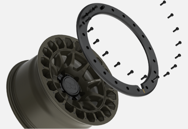 The rock guard ring is designed to protect the lip and face of the wheel and delivers rugged charm or sleek simplicity by removing a few mounting bolts.